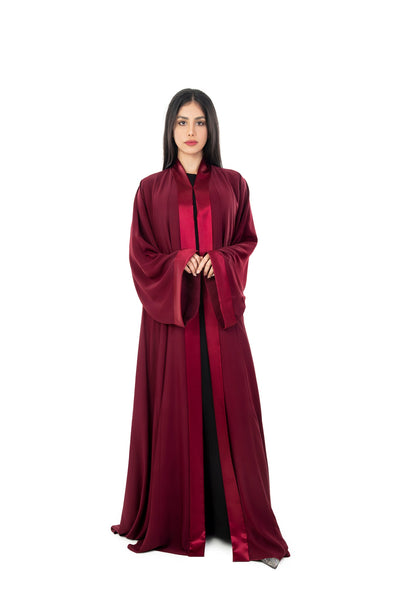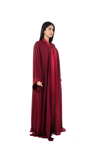 Maroon Satin Lapel Abaya